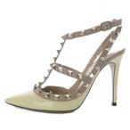 ヴァレンティノ ヴァレンチノ VALENTINO パンプス ピンヒール ポインテッドトゥ ロックスタッズ アンクルストラップ 36.5 アイボリー