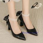 パンプス アンクルストラップ ローヒール パンプス オケージョン