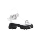 サンダル オープン スクエアトゥ アンクル ストラップ チャンキー パンプス レディース