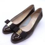 サルヴァトーレフェラガモ パンプス エナメル ヴァラ シューズ イタリア製 ブランド 靴 レディース 6dサイズ ブラウン Ferragamo