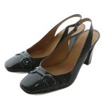 エルメス HERMES パンプス エナメル スクエアトゥ ハイヒール スリングバック 35.5 22.5cm 黒 ブラック /XZ ■GY19 レディース