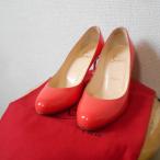 クリスチャン ルブタン Christian Louboutin 35 1/2 エナメル コーティング パンプス 朱赤