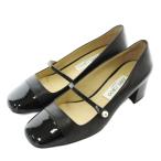 ジミーチュウ JIMMY CHOO ELISA 45 パンプス エナメル レザー スクエアトゥ チャンキーヒール ストラップ パール 38 24cm 黒
