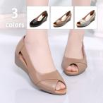 パンプス オープントゥ ウェッジソール ローヒール4cm シンプル ナチュラル 大人カジュアル 美脚 レディース靴 歩きやすい 柔らかい