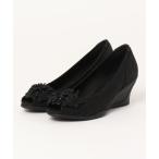 パンプス フラワーモチーフコンフォートオープントゥウェッジパンプス