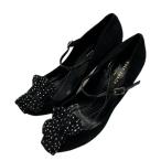 ミュウミュウ miumiu ヒールパンプス オープントゥ ビジュー 黒 36・1/2 【中古】(59101)