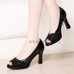 パンプス 痛くない オープントゥ ローヒール チャンキーヒール 3cmヒール 婦人 仕事 春 夏 無地 柔らかい 歩きやすい 低いヒール 滑り止め 太