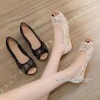 オープントゥ パンプス サンダル ウェッジソール ローヒール 痛くない 大きいサイズ サイドオープン 夏秋用 レディー