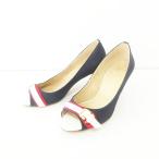 LOOP トリコロールカラー ヒール パンプス オープントゥ 日本製 23.0cm 紺 ネイビー ■MET1 レディース