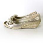 TOMO パンプス ウエッジパンプス オープントゥ リボン エスパドリーユ 35 シャンパンゴールド ベージュ 22.5cm くつ 靴 シューズ
