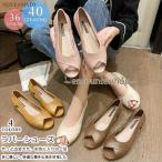 オープントゥ パンプス サンダル ウェッジソール ローヒール 痛くない 大きいサイズ サイドオープン 夏秋用 レディー