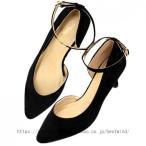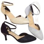 パンプス ストラップ ミドルヒール 5.5cmヒール 痛くない サイドオープン 脱げない レディース グリッター ラメ スエード 合成皮革 ポインテッドトゥ 黒 ブラック 小さいサイズ 大きいサイズ 22-25cm No.5450 リバティードール