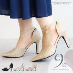 パンプス サイドオープン セパレート ポインテッドトゥ アンクルストラップ チャーム付き 走れるパンプス おしゃれ レディース ピンヒール アーモンドトゥ ハイヒール 9cm キレイめ 前詰まり トレンド 黒 ブラック 8125