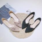 ぺたんこパンプス オープントゥリボン サンダル フラット ローヒール 可愛い サイドオープン フラットシューズ 美脚 クッション カジュアル おしゃれ