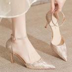 レディース ハイヒール パンプス 美脚 ポインテッド サイドオープン ヒール シューズ ピンヒール 身長 シルバー シャンパン グラデーション ストラップ靴 花嫁