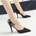 レディース ハイヒール パンプス サイドオープン パーティードレスシューズ リボン 美脚パンプス ポインテッドトゥ ピンヒール 歩きやすい 痛くない