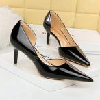 サイドオープン パンプス レディース フォーマル ハイヒール ピンヒール 8cm エナメル グリッター ポインテッドトゥ オシャレ セパレート 低反発 結婚式