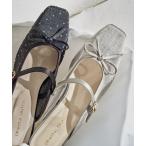パンプス 2025秋冬新作 チュールリボン×グリッター ヒールパンプス /MOR113