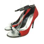 シビラ SYBILLA サテン パンプス ビジュー オープントゥ ピンヒール 赤 レッド 37 約23.5cm