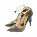 アレッサンドロデラクア ALESSANDRO DELL'ACQUA パンプス ハイヒール ポインテッドトゥ レザー サテン ロゴ 38 グレー