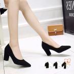 パンプス スエード調チャンキーポインテッドトゥパンプス