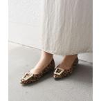 パンプス アーモンドトゥ メタリック バックル フラット パンプス