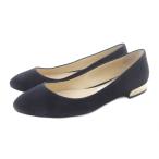 ジミーチュウ JIMMY CHOO メタルヒール フラットパンプス スエード 37 黒 ブラック ゴールド色 /SR レディース