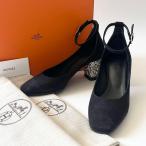 HERMES エルメス ガーリー60 シェーヌダンクル スエード ストラップ メタルヒール パンプス ブラック 【中古】