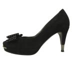 BRUNOMAGLI ブルーノマリ スエードレザー パンプス シューズ 靴 スタッズ リボン 34 22cm 黒 ブラック レディース 古着 中古