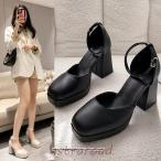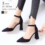24%OFF 【ラスイチSALE】 パンプス ストラップ 痛くない ミドルヒール 4cmヒール チャンキーヒール セパレート 太ヒール ポインテッドトゥ 合成皮革 スエード 黒 22-25cm No.5391 リバティードール