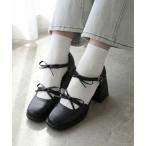 パンプス LOVEHUNTER+ ダブルリボンストラップ スクエアセパレートパンプス