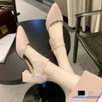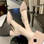 2025新色 セパレート パンプス ストラップパンプス サンダル 痛くない 走れる レディース PUレザー ポインテッドトゥ 5cm 太めヒール 20代 30代 40代