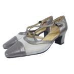 銀座ヨシノヤ 美品 セパレートパンプス ヒール メッシュ 切替 レザー ストラップ 黒 ブラック グレー 22cm ■MET1 レディース
