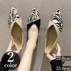 パンプス レディース 女性 靴 くつ シューズ ローヒール ぺたんこ フラット ゼブラ柄 スエード ポインテッドトゥ フェイクレザー レザー調 柔らか