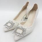 ◇ ⊇ ノーブランド ツイード ビジュー パンプス サイズ22.5 ホワイト レディース E