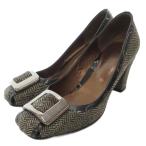 アンタイトル UNTITLED パンプス シューズ スクエアバックル ツイード ヘリンボーン 23cm グレー 黒 ブラック /JS ■YHS6 レディース