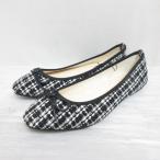 ルリアンプラス LELIEN PLUS バレエ シューズ フラット パンプス リボン ツイード 36 約23cm 黒 ブラック 白 靴 レディース