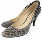 ◇ ⊇ VIVA ANGELINA ファーリボンビジュー装飾 ツイード柄 パンプス サイズ231/2 ベージュ系 グレー系 レディース E