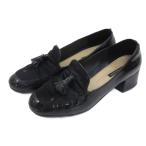 ファビオルスコーニ FABIO RUSCONI エナメル パンプス ハラコ タッセル ブラック 38 25cm レディース