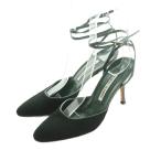 マノロブラニク MANOLO BLAHNIK パンプス ストラップ ハラコレザー ピンヒール 38.5 25.5cm ダークグリーン /MI ■GY17 レディース