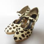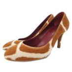 【中古】良品 MARNI マルニ ハラコ ダルメシアン柄 ウッドソール ハイヒール セパレートパンプス サイズ38 25cm ブラウン×ベージュ レディース Luxs ブランド古着のリュクス