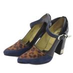 トーガ プルラ TOGA PULLA ハラコ ハイヒール パンプス スエード ウエスタンバックル ネイビー ブラック 37 23-23.5cm レディース