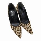 エドアルドアレッシ EDOARDO ALESSI パンプス ポインテッドトゥ ハラコ レオパード柄 36 茶 ブラウン /JS レディース