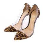 セルジオロッシ Sergio rossi パンプス ポインテッドトゥ ピンヒール ハラコ 切替 ヒョウ柄 レオパード 36 クリア ベージュ 茶
