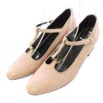 セリーヌ CELINE ストラップパンプス ラウンドトゥ チャンキーヒール パイソンレザー 39 ピンク /BB レディース