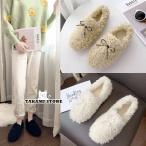 ファーシューズ 靴 ムートン レディース フラットシューズ 秋 冬 パンプス ファー モコモコ あったか 履きやすい ぺたんこ リボン付き おしゃれ
