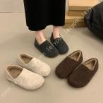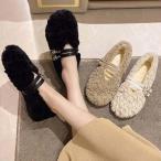 ファー付き フラットシューズ パンプス 冬靴 歩きやすい 暖かい ローヒール 痛くない 防寒 可愛い もこもこ あったか ファー モカシン レディース ぺたんこ