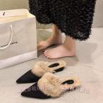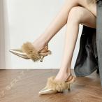 バックストラップ パンプス レディース ファー付き サンダル 前ふさがり ファー ミュール 歩きやすい 履きやすい 疲れない 暖かい 大きいサイズ かわいい OL