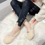 【大特価】パンプス ファー付き 防寒 フラットシューズ バレエシューズ 裏起毛 ぺたんこ バックル おしゃれ バレエパンプス 軽量 ポインテッドトゥ 痛くない