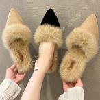 パンプス レディースパンプス ファーパンプス ペタンコ . ヒール ラウンドトゥ ポインテッドトゥ ふわふわ 履きやすい ファー付き 布